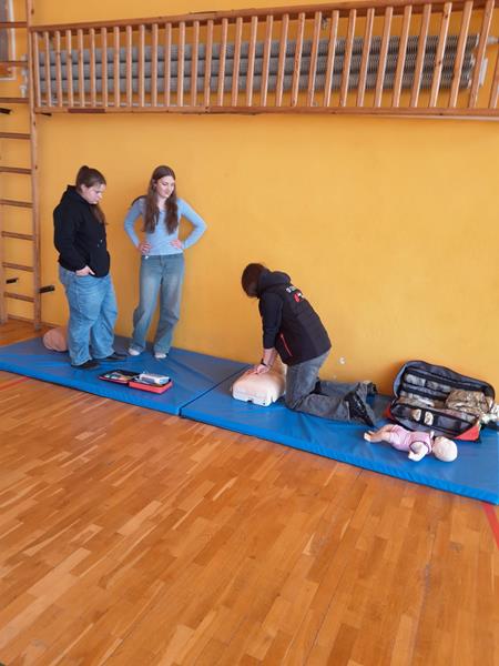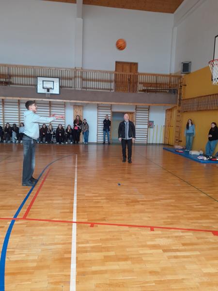 Na sali sportowej zaprezentowano pokaz resuscytacji, który wzbudził duże zainteresowanie i miał walor edukacyjny. Uczniowie mogli również dowiedzieć się więcej o możliwościach odbywania praktyk zagranicznych – przedstawiono informacje z wyjazdów do Grecji, na Maltę oraz do Niemiec.